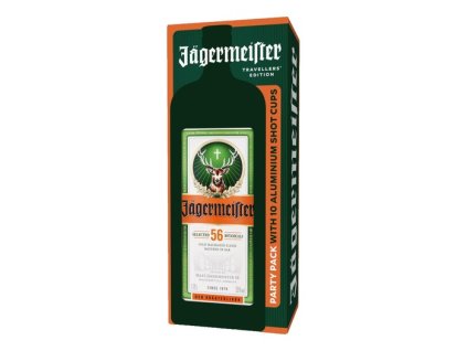 Jagermeister Party 35% 1,75 l (10 golden aluminium shots). Silná výrazná vůně, výjimečně citlivě vyvážená hořkosladká chuť.