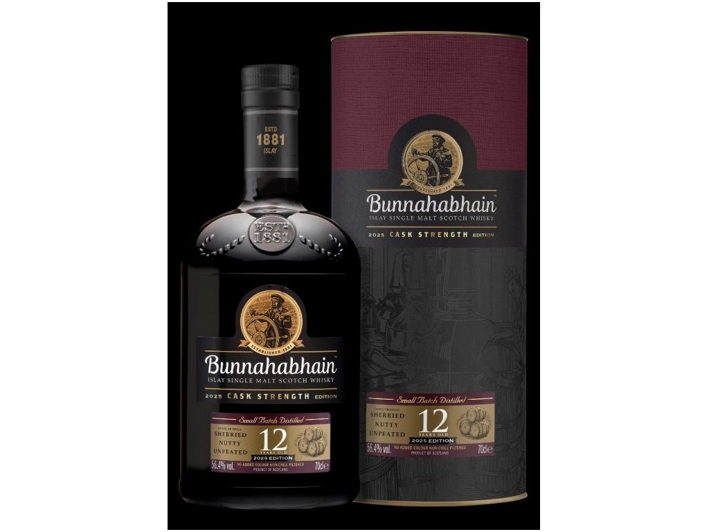 Bunnahabhain 12 Year Old Cask Strength 56,4 % je poctivá islay single malt v plné, sudové síle – taková, jak opustila sud, bez filtrace za studena a bez přidaného barviva.