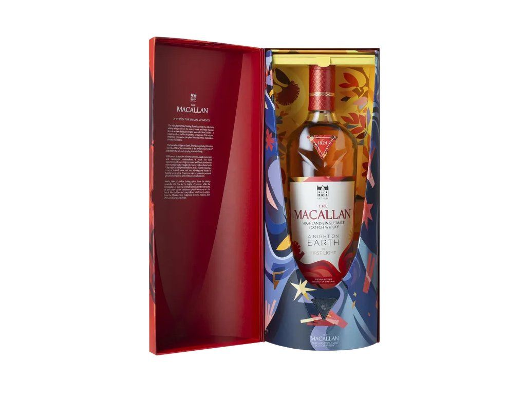 Nezaměnitelná skotská single malt, která přináší i sladké, ovocné akcenty s měkkým kořením a tónem toustovaného dubu. Chuť s tóny bohatého karamelu podpořeného jemným pečivovým kořením, vanilkovou zmrzlinou, pavlovou, moučkovým cukrem, peckovinami a náznakem kokosu a manuka medu. Sladký a ovocný finish s jemným kořením a toastovaným dubem. Čtvrté vydání série A Night on Earth oslavuje příchod prvního ranního světla nového roku v jedné z nejvýchodněji položených zemí světa - Nového Zélandu. Na této edici spolupracoval The Macallan s novozélandskou umělkyní Bonnie Brown. Každý sud použitý pro A Night on Earth: The First Light byl individuálně posouzen týmem Whisky Mastery Team, který v průměru provádí 636 senzorických kontrol, aby zajistil bezkonkurenční kvalitu.