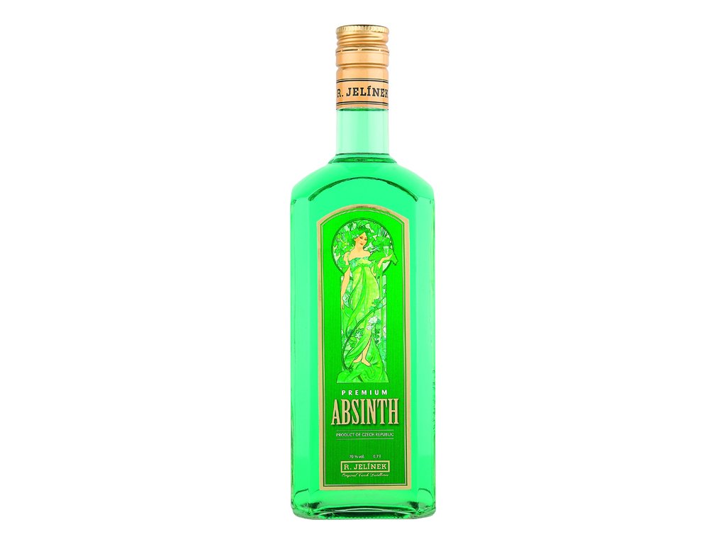 Absinth 0,7 l Rudolf Jelínek - je 70% bylinný likér vyráběný z pelyňku pravého, obsahuje také éterické oleje pelyňku, anýzu, fenyklu a koriandru. Svou popularitu získal i díky dříve neregulovanému obsahu thujonu, psychotropní látky, která způsobovala konzumentů zvláštní stavy. Snad i díky této látce byl absinth v minulosti nápojem umělců, postupně se stal ale nápojem nejchudších vrstev. V roce 1915 byl coby symbol alkoholismu zakázán. Dnes už je obsah thujonu v absinthu upraven předpisy a jde proto v největší míře o pověsti a legendy s tímto nápojem spojené.