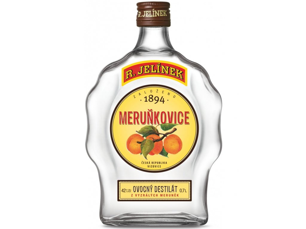 Meruňkovice 0,5 l Rudolf Jelínek - Pravý destilát s dlouholetou tradicí se vyrábí trojí destilací kvasu z vyzrálých meruněk. Po roce zrání získává příjemnou vůni i chuť po meruňkách. Doporučujeme jako aperitiv a pro přípravu koktejlů.