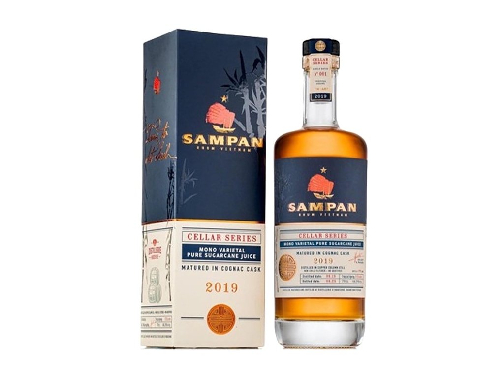 Sampan Cognac Cask 2019 je rum vyrobený z vybrané jednodruhové cukrové třtiny pěstované ekologicky, bez chemických látek. Dlouhá fermentace v termoregulačních nádržích a destilace metodou column still tvoří základ pro kvalitní rum. Tento proces je dovršen čtyřicetiměsíčním zráním ve středně vypálených sudech po vysoce kvalitním koňaku (350 l). Spojení agricole rumu a koňaku je poctou francouzskému palírenskému umění a jedinečné krásy jihovýchodní Asie.