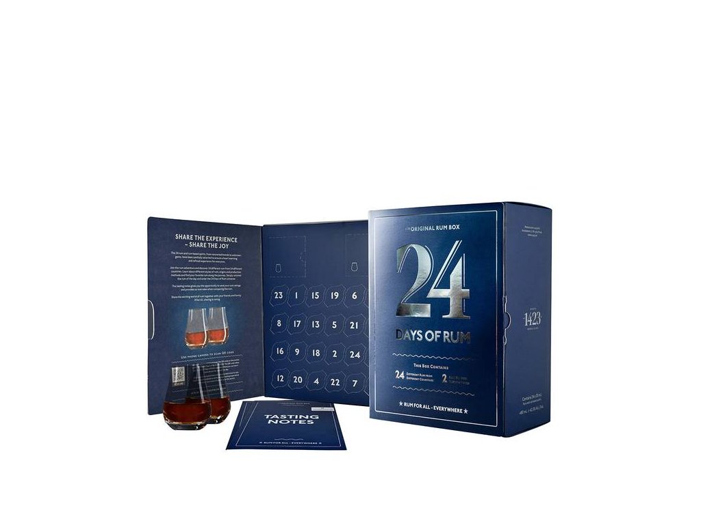 Miniatury (20 ml) se skrývají za perforovanými okénky označenými čísly 1 až 24. Každá miniaturka je opatřena etiketou připomínající originální lahev a obsahuje údaje o výrobci, procentu alkoholu a zemi původu. Pomocí QR kódu se o jednotlivých rumech můžete dozvědět více a zapojit se do online rumové komunity.