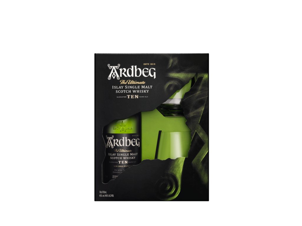 Ardbeg Ten je ikonická whisky, vlajková loď palírny Ardbeg,
