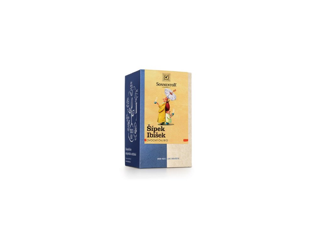 Čaj Šípek ibišek porcovaný dvoukomorový 54 g Sonnentor. Klasika mezi ovocnými čaji, která má intenzivní červenou barvu a kyselo-ovocný tón. Báječně osvěží v horkých letních dnech.