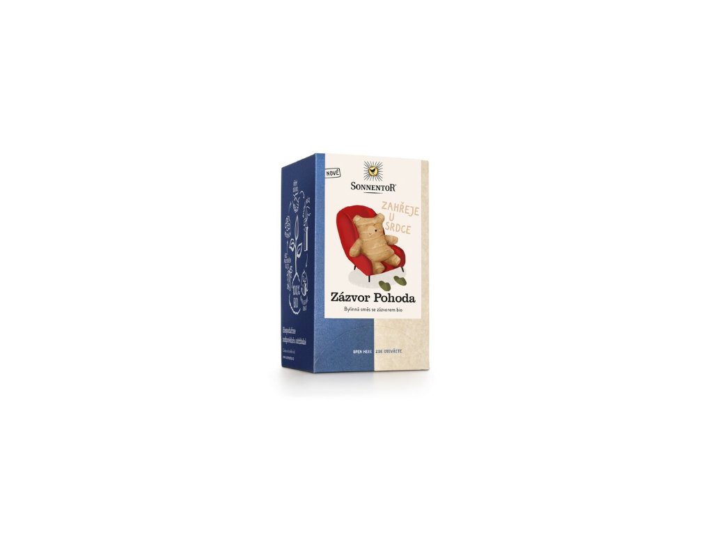 Čaj Zázvor Pohoda 32 g porcovaný dvoukomorový Sonnentor. Bylinná směs se zázvorem přichází jako novinka spolu s novým designem celé zázvorové řady a přináší, jak název napovídá, pohodu po dlouhém dni
