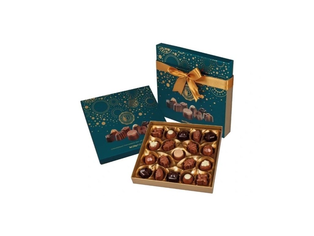 Uvnitř najdeš spoustu chutí – lískooříškový a mandlový nugát gianduja, citronové, pomerančový, jahodový nebo cappuccino ganache, čokoládový krokant i míchané dražé. Každá pralinka má svůj charakter, takže si můžeš vybrat podle nálady nebo prostě ochutnat všechny. Zelené balení s orientálním vzorem a dárkovou taškou vypadá zajímavě a dělá dojem.