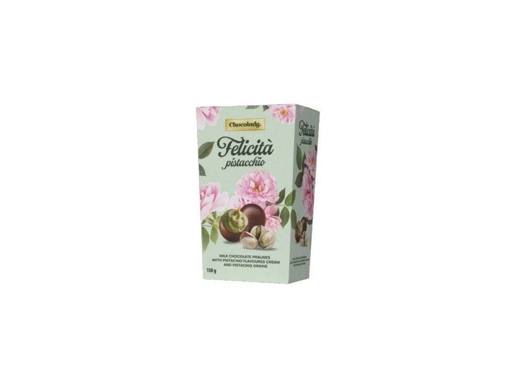 CHOCOLADY Felicita pistachio box - pralinky z mléčné čokolády s pistáciovým příchutí a pistáciemi 150g