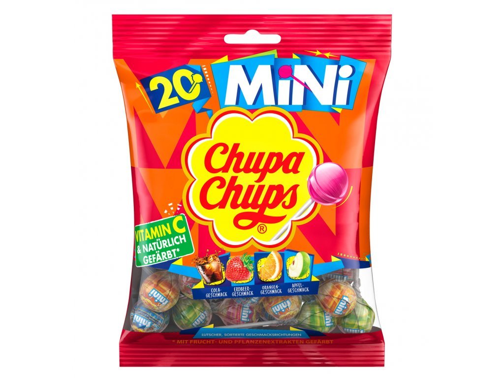 - Velice oblíbené balení mini lízátek Chupa Chups s příchutěmi Jahoda, jablko, cola, pomerančem..