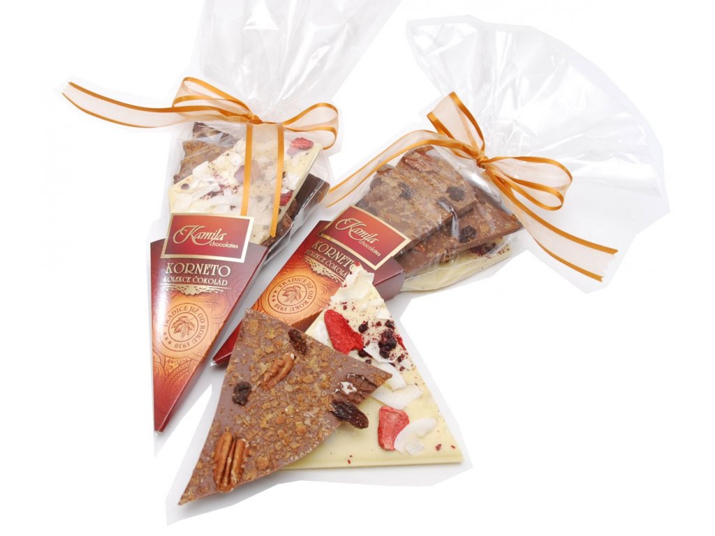 Korneto ORIGINÁL - MIX lámaných čokolád s posypem v dárkovém balení 200g Kamila Chocolate