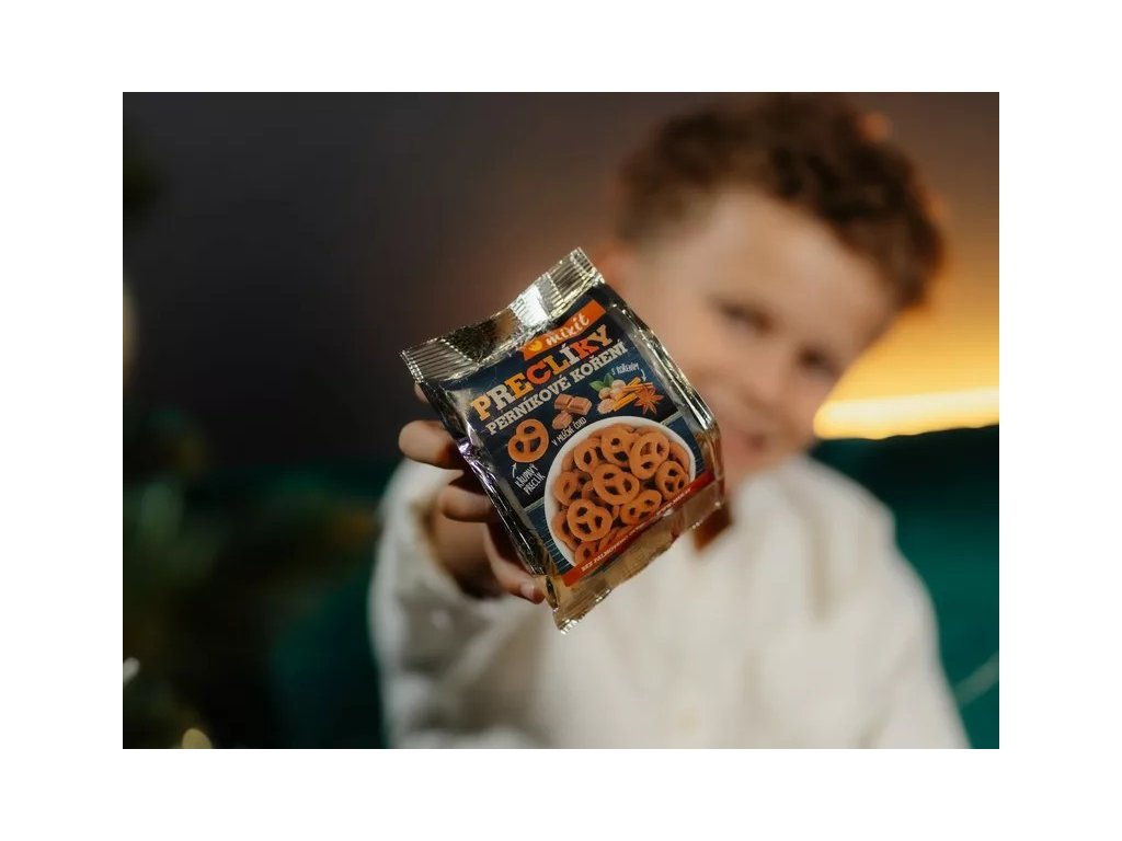 Preclík, který chutná jako právě uloupnutý z perníkové chaloupky? Máme, a dokonce v praktickém balení do kapsy! Přikutálel se k nám a chutná prostě pohádkově. Pod bohatou vrstvou mléčné čokolády a omamně voňavého perníkového koření se skrývá jemně solený a dozlatova vypečený preclík. Stačí otevřít a ucítíte to sami... tak voní skořice, muškátový ořech, koriandr, zázvor, fenykl, hřebíček, nové koření, anýz, badyán, pepř černý a kardamom!