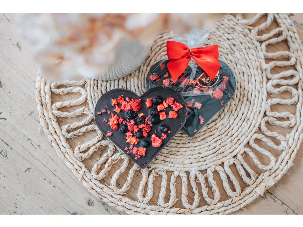Srdce z hořké čokolády sypané lyofilizovaným ovocem 100g Kamila Chocolates
