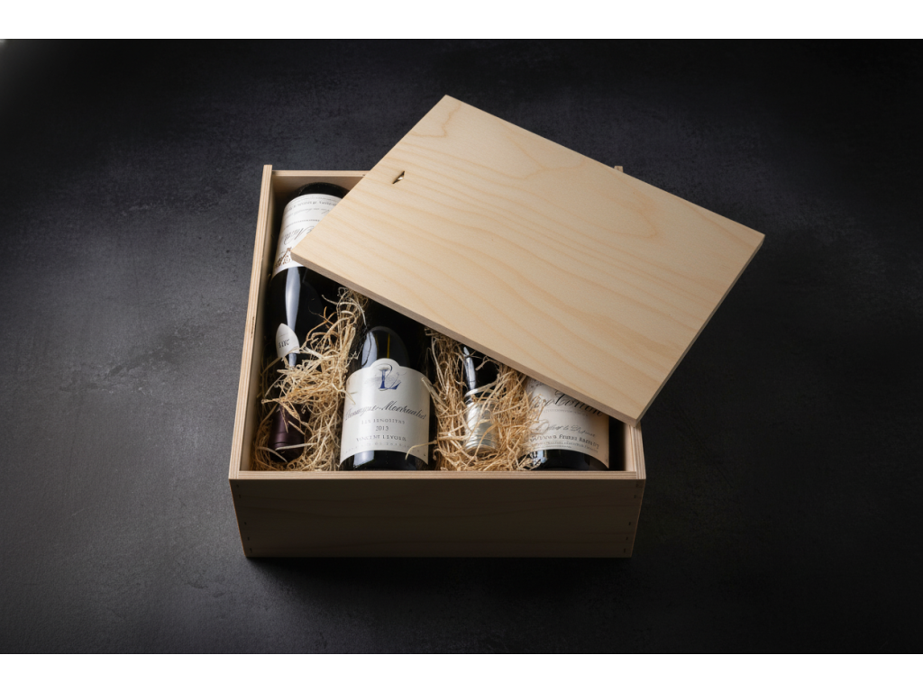 Dřevěná kazeta na 4 láhve vína představuje stylové a reprezentativní balení pro kolekci čtyř vybraných burgundských vín. Je ideální pro slavnostní příležitosti, hodnotné dárky i firemní prezentaci, kde záleží na prvním dojmu i kvalitě obsahu.