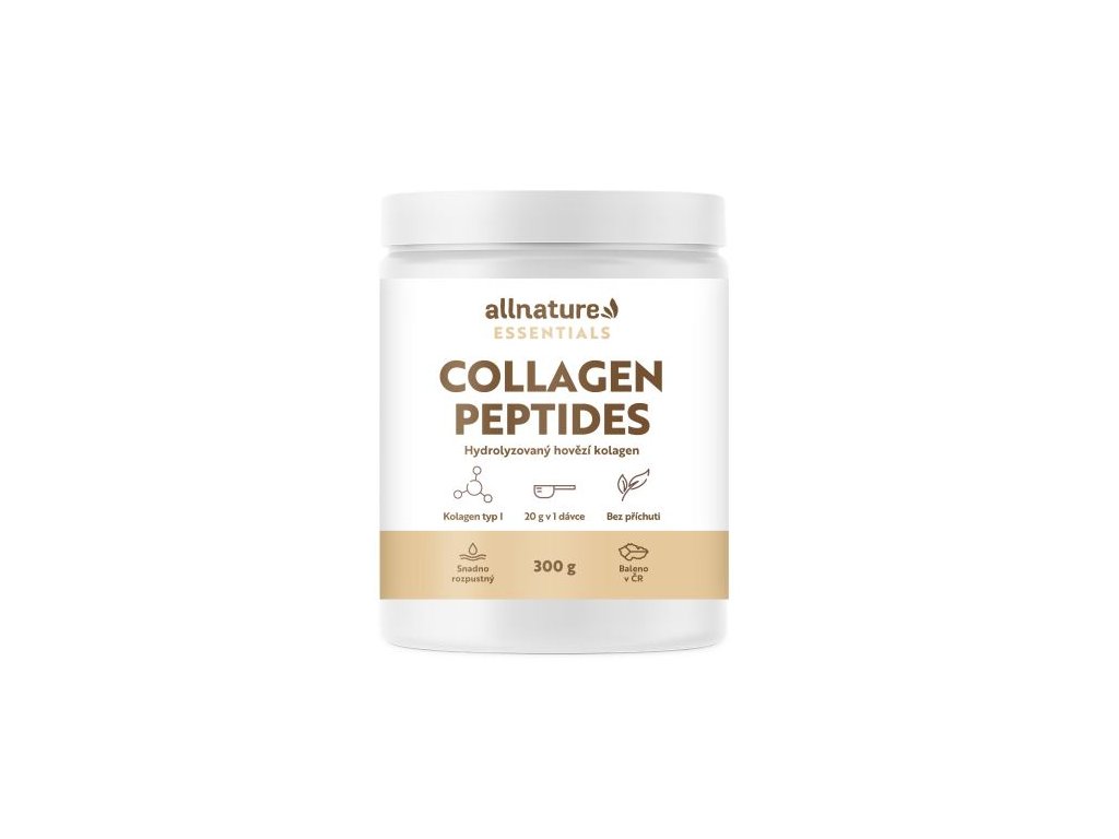 Allnature Kolagen 300 g - Prémiový hydrolyzovaný hovězí kolagen typu I ve formě jemného prášku, který přispívá k udržení pěkné pokožky, vlasů, nehtů, kloubů a pojivových tkání. Kolagen je přirozenou součástí našeho těla, avšak s věkem jeho tvorba klesá. Pravidelným doplňováním můžete podpořit pružnost pokožky, pevnost vlasů i vitalitu pohybového aparátu.