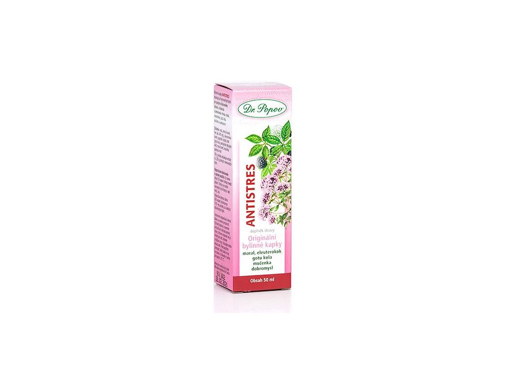 Antistres, originální bylinné kapky, 50 ml Dr. Popov. Pro podporu duševního zdraví, relaxaci a zmírnění stresu (díky mučence). Doplněk stravy.
