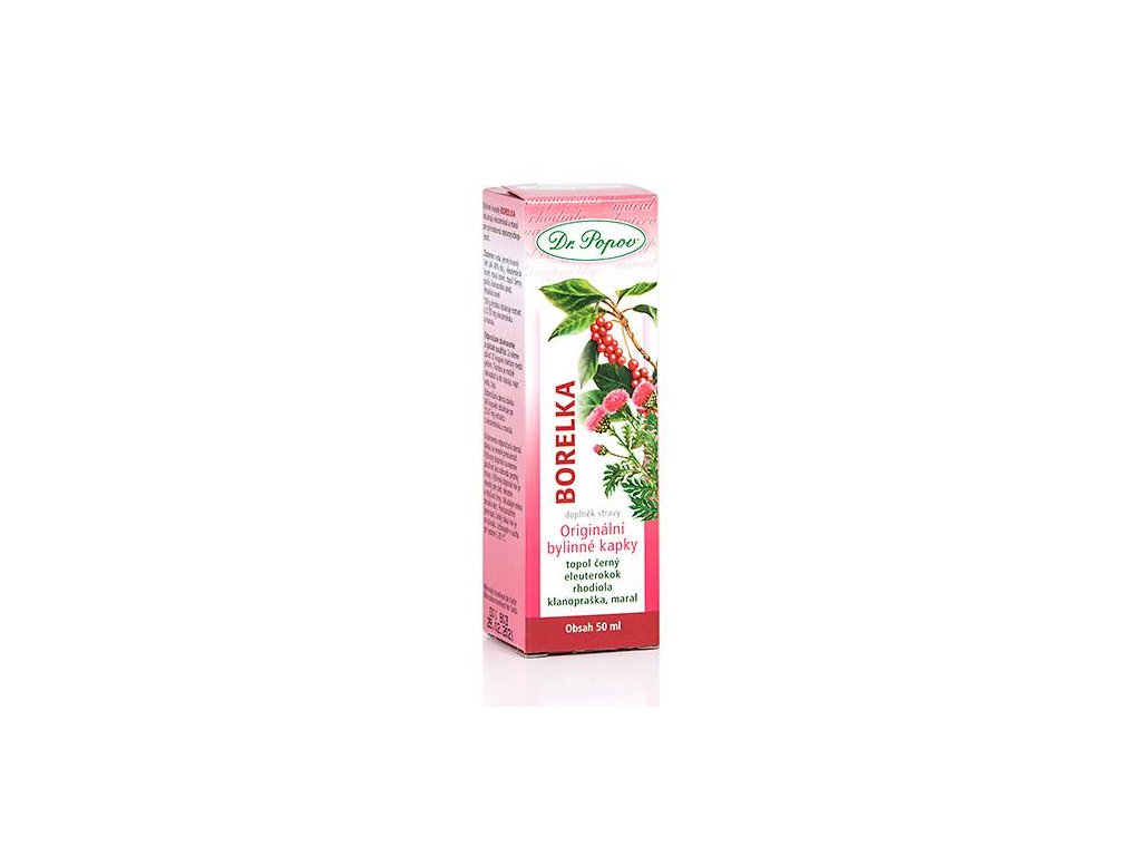 Borelka, originální bylinné kapky, 50 ml Dr. Popov. Pro přirozenou obranyschopnost organismu (díky maralu a eleutorokoku). Doplněk stravy.