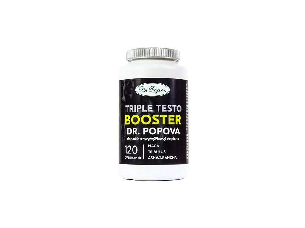 Triple testo BOOSTER Dr. Popova je čistě přírodní kombinací bylin a extraktů (tribulus, maca, ashwagandha) na podporu hormonální aktivity, výdrže, vitality, energie a regenerace. Pro maximální výkony a výsledky ve sportu a jiné fyzické zátěži. Kapsle také podporují zdravou funkci reprodukčního systému a fyzické i psychické zdraví. Extrakty jsou doplněny bylinami pro lepší vstřebatelnost účinných látek.