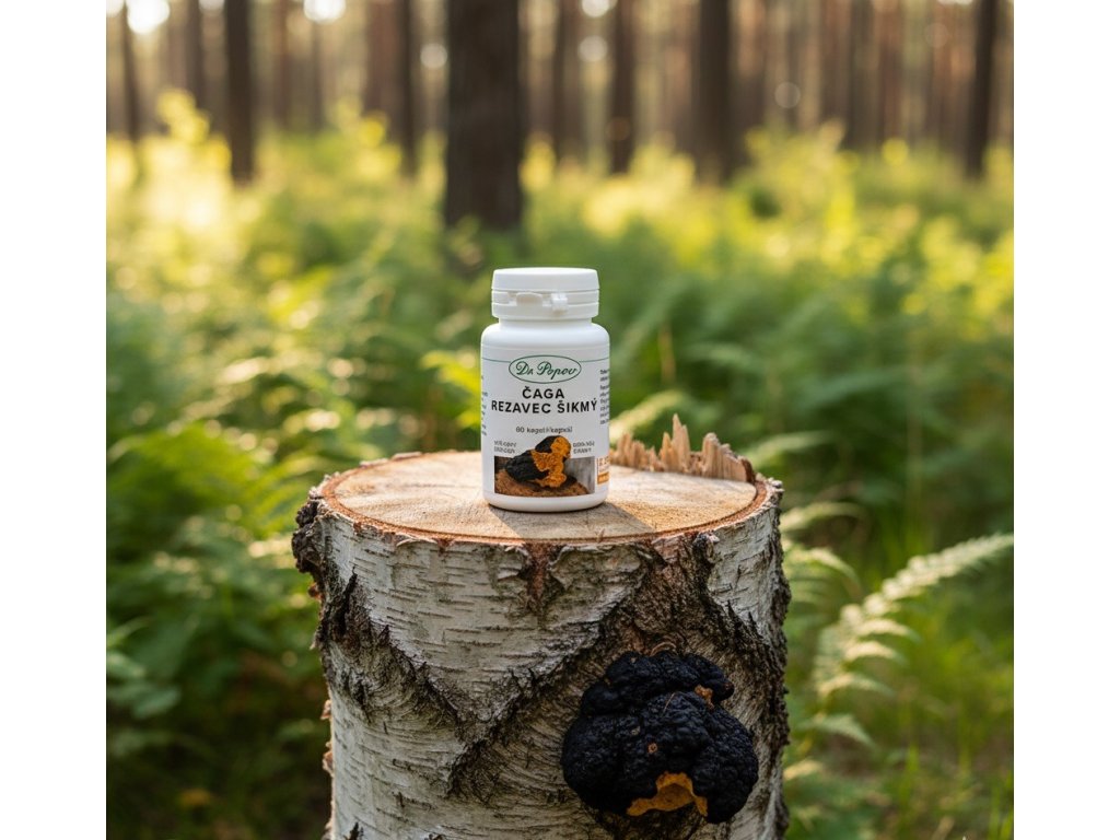 Čaga-Rezavec šikmý , 60 kapslí Dr. Popov. Přírodní dar k zachování dlouhověkosti, vitality, imunity, fyzické i duševní energie. Vysoce kvalitní extrakt z čagy. Doplněk stravy, vegan.