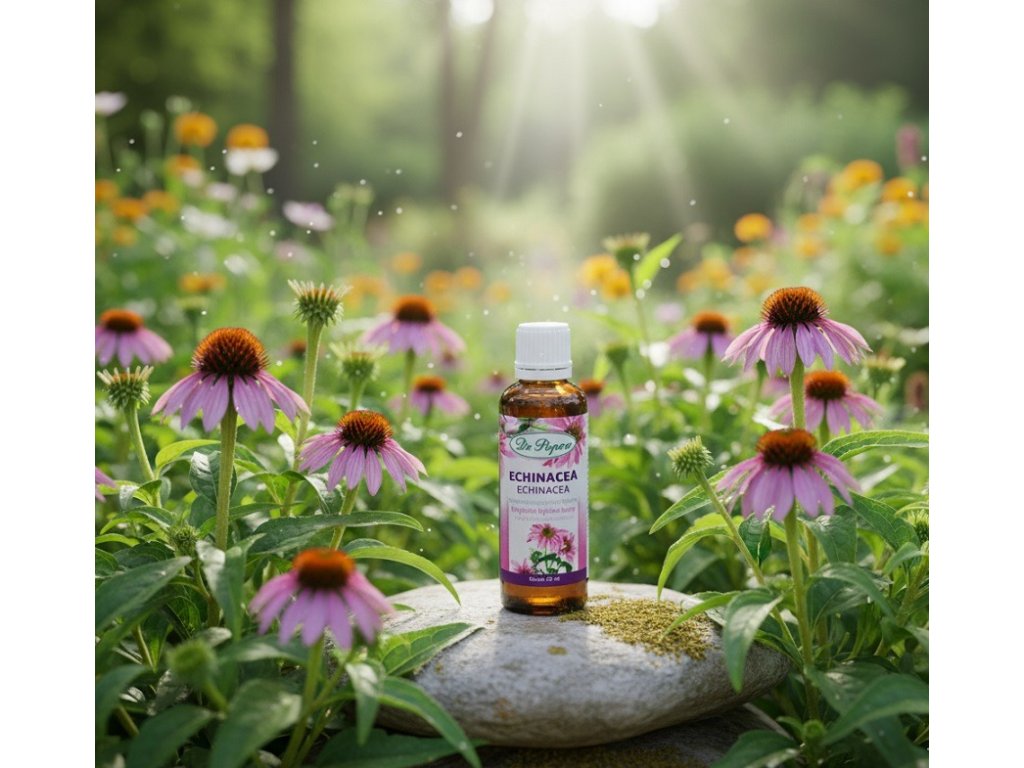 Echinacea , originální bylinné kapky, 50 ml Dr. Popov. Jedinečná bylina na podporu přirozené imunity a zdravé horní dýchací cesty. Doplněk stravy.