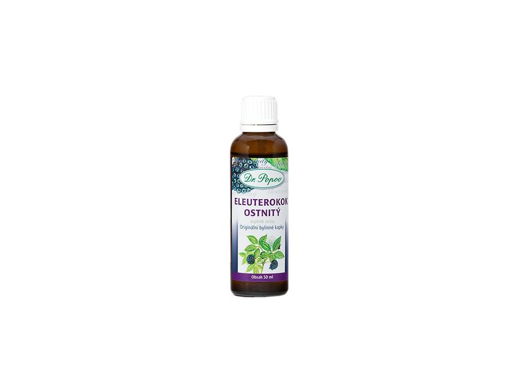 Eleuterokok ostnitý, originální bylinné kapky 50 ml Dr. Popov. Povzbuzovací bylina pro fyzické a duševní zdraví, výkonnost a dobrou náladu. Doplněk stravy.