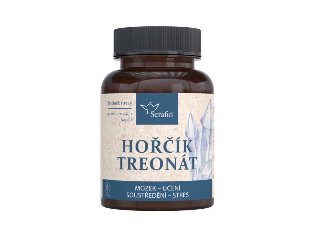 Serafin Hořčík treonát 90 ks kapslí - Přírodní kapsle - pro snížení míry únavy a vyčerpání. Příznivě ovlivňují psychiku, činnost mozku a podporují koncentraci.