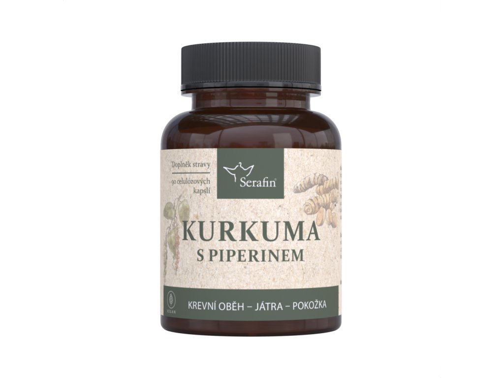 Serafin Kurkuma a piperin 90 ks kapslí - Přírodní bylinné kapsle - játra, pokožka, krevní oběh.