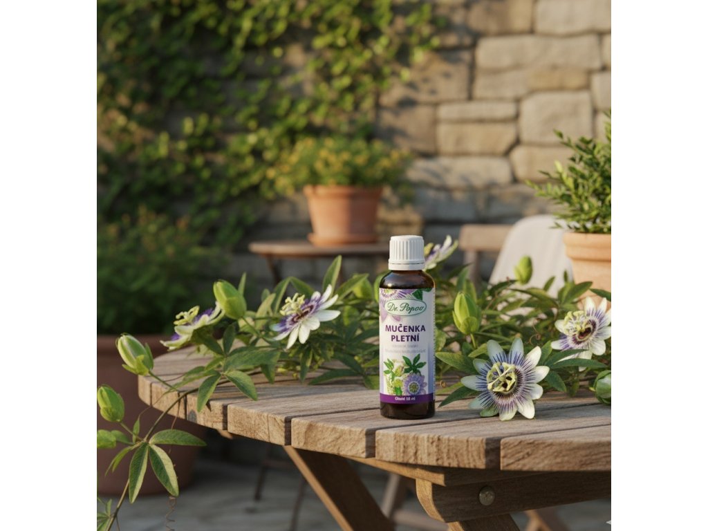 Mučenka pletní, originální bylinné kapky, 50 ml Dr. Popov. Zklidňující bylinka na pochroumané nervy a neklid, pro zdravý spánek, při stresu a přepracovanosti. Doplněk stravy.