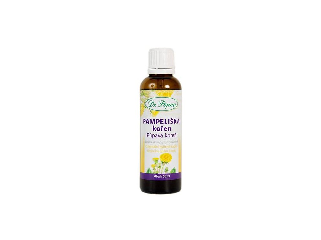Pampeliška kořen, originální bylinné kapky, 50 ml Dr. Popov. Ke stimulaci zdravého trávení, správnou činnost žaludku a jater, působí jako prebiotikum. Doplněk stravy.
