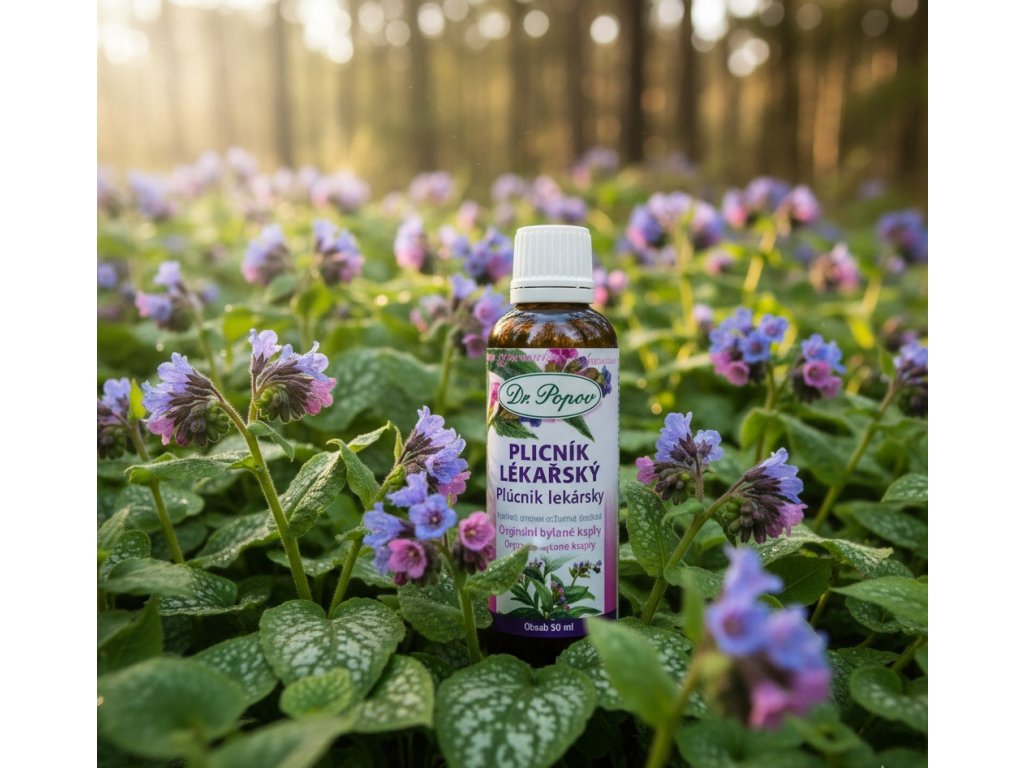 Plicník lékařský, originální bylinné kapky, 50 ml Dr. Popov. Výborná bylina pro zdravé dýchací cesty a plíce. Doplněk stravy.