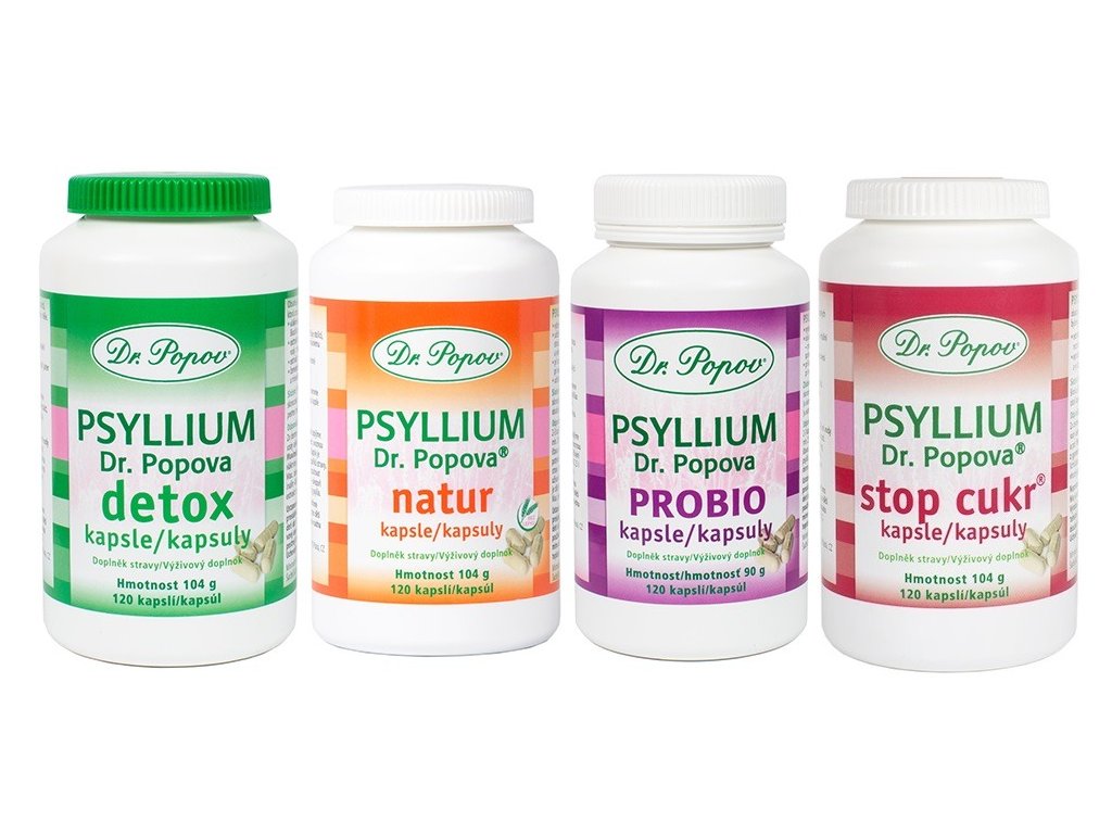 Maximální denní dávka je 9 kapslí. Jedna kapsle obsahuje 650 mg Psyllia Dr. Popova.