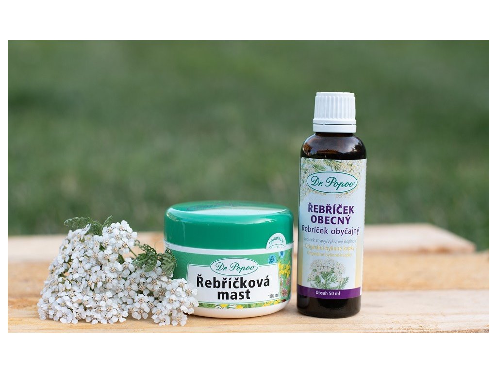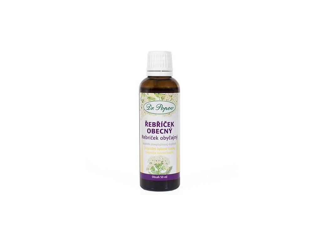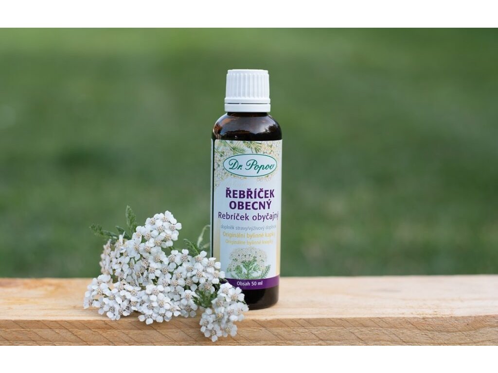 Řebříček obecný, originální bylinné kapky, 50 ml Dr. Popov. Je právem nazýván "králem v léčbě ženských nemocí". Pro klidný průběh menstruace, výborná bylina nejen pro ženy. Doplněk stravy.