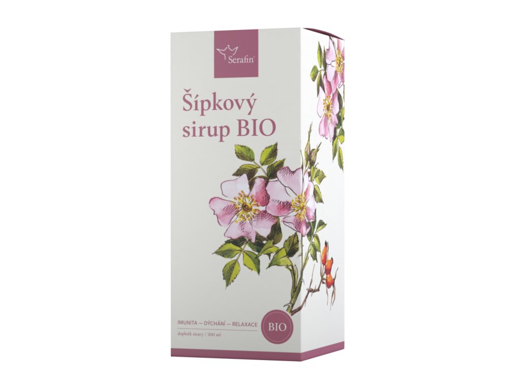 Šípkový sirup BIO 200 ml Serafin. Šípkový sirup v BIO kvalitě. Imunita, krevní oběh, relaxace, dýchání.