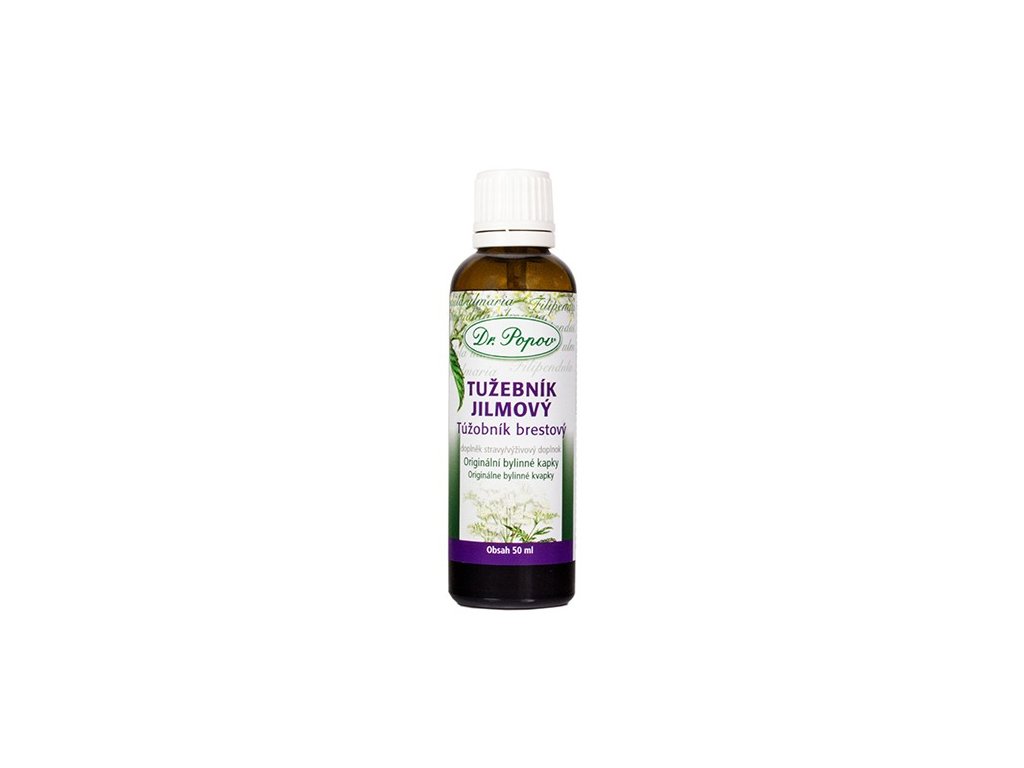 Tužebník jilmový, originální bylinné kapky, 50 ml Dr. Popov. Je ceněn pro své diuretické účinky, vliv na klouby, močové cesty a ledviny. Doplněk stravy.