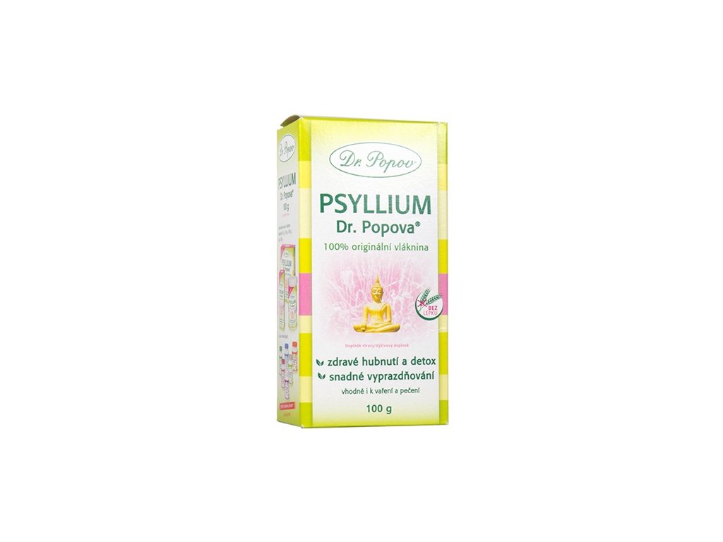Psyllium Dr. Popova změkčuje stolici a zároveň zvětšuje její objem. Tím napomáhá správnému a snadnému vyprazdňování, což je důležité při tuhé a nepravidelné stolici, diskomfortu v oblasti konečníku, v těhotenství apod.