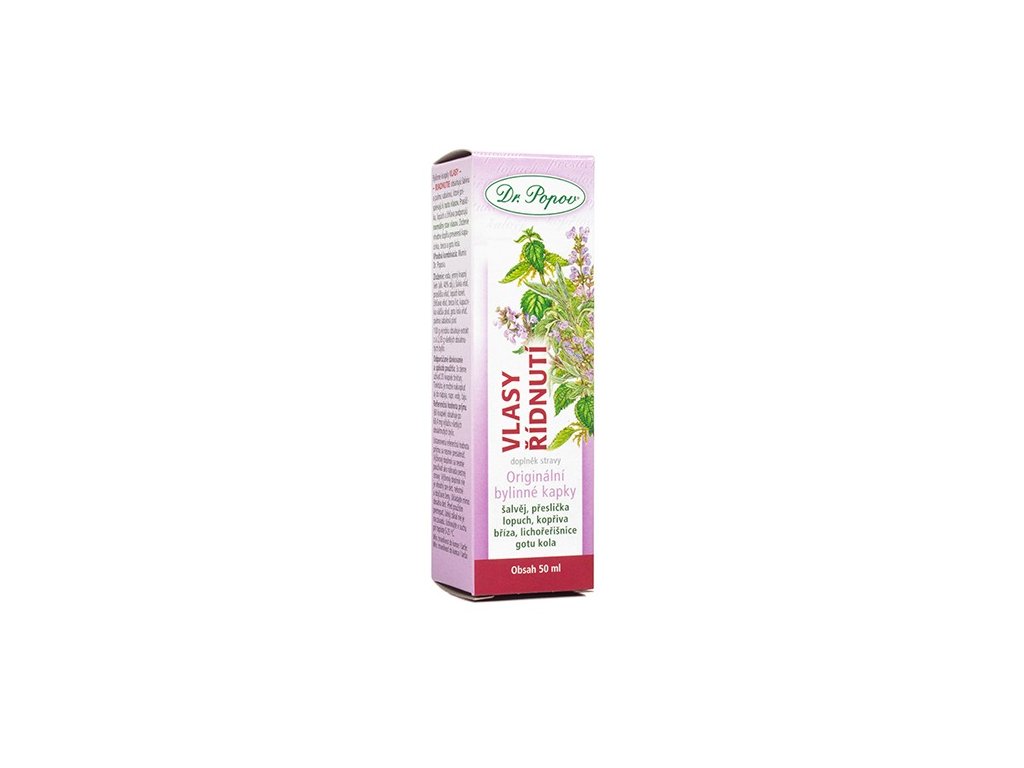 Vlasy řídnutí, originální bylinné kapky, 50 ml Dr. Popov. Podpora vašich vlasů zevnitř, podpora jejich růstu a zdravého stavu pokožky. Doplněk stravy.