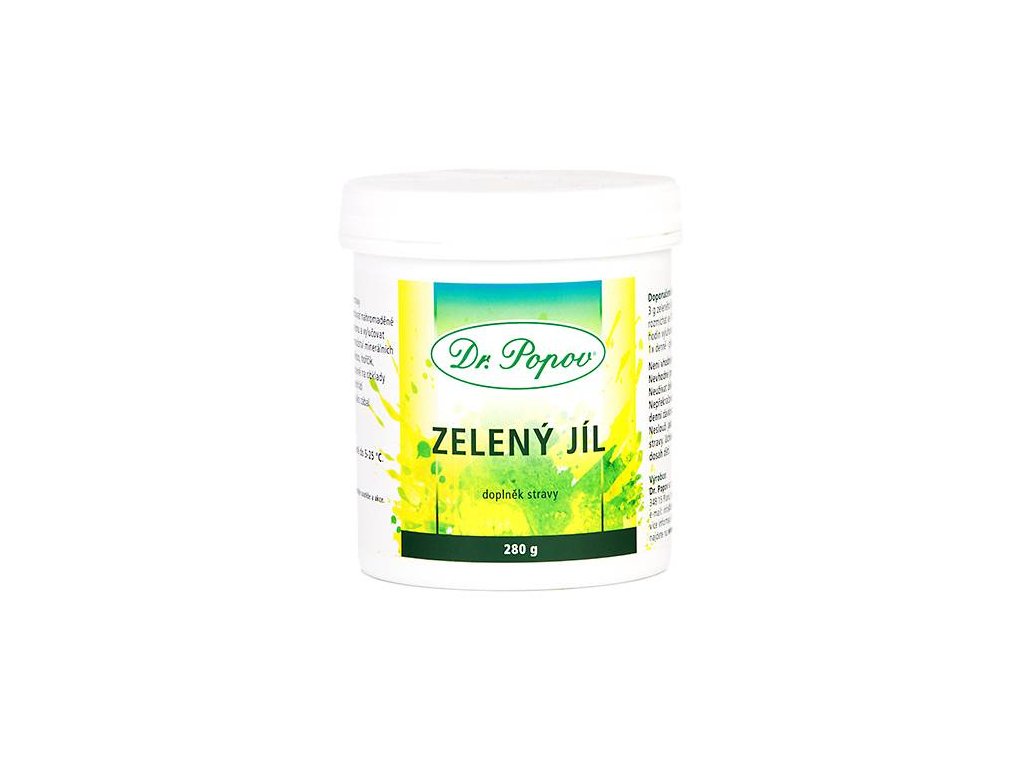 Zelený jíl Dr. Popova dodáváme v prášku, v praktickém plastovém obalu. Je bez chuti a zápachu. Neobsahuje žádné chemické a konzervační látky, je 100% přírodní produkt. Je sušený na slunci a funguje pouze ve vlhkém stavu.