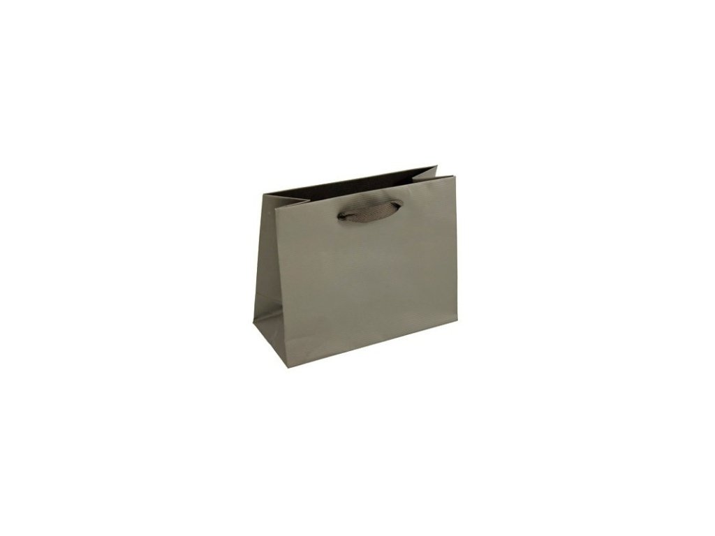 Elegantní dárková taška v kaštanové barvě. Taška je vyrobená z pevného rýhovaného kraftového papíru. Svým rozměrem 25x11x19 cm je vhodná na drobné dárky.