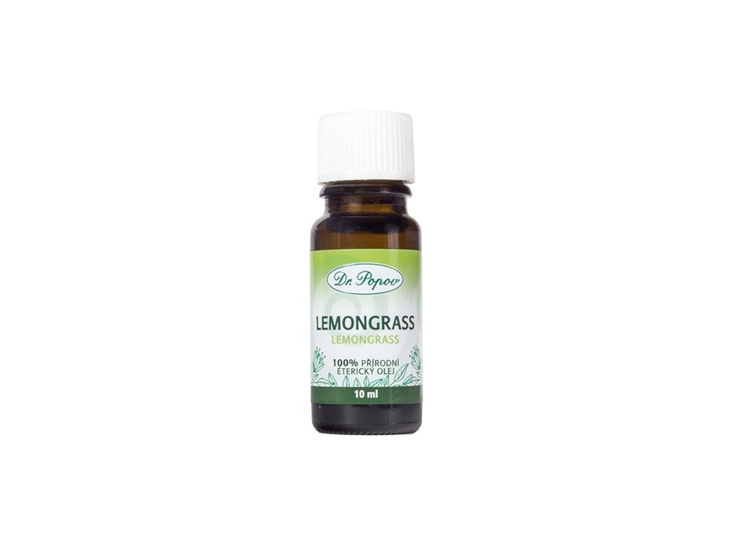 Lemongrassová silice, 10 ml Dr. Popov. Aktivuje dýchání (má antibakteriální účinky). Osvěžuje ovzduší v zakouřených místnostech. Pomáhá lepšímu soustředění (pro řidiče). Povzbuzuje organismus.