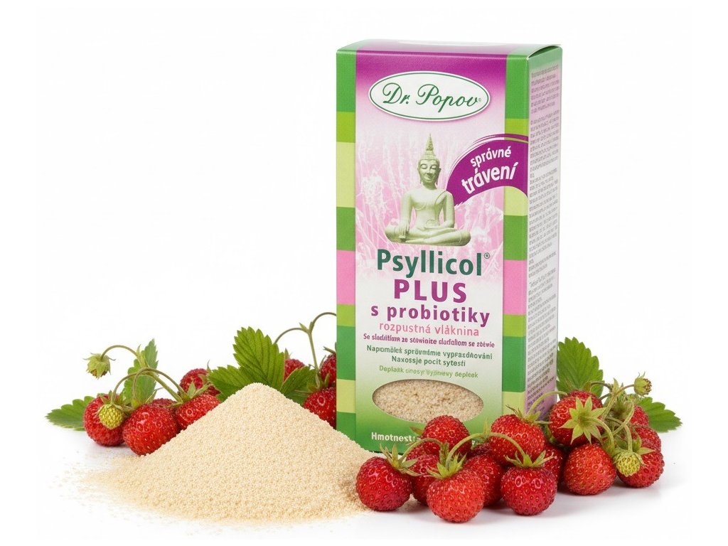 Psyllicol® PLUS s probiotiky, 100 g Dr. Popov. Pro zdravou střevní mikroflóru. Vláknina Psyllium Dr. Popova obohacená o probiotika.