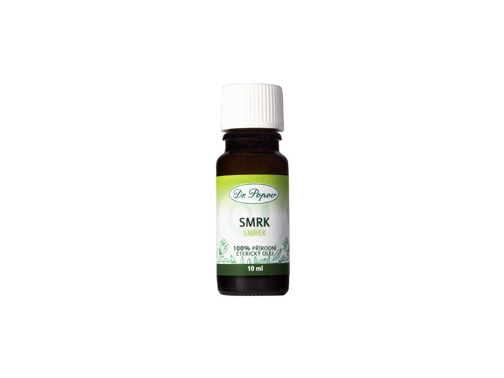 Smrková silice, 10 ml Dr. Popov. Vhodná při potížích s horními cestami dýchacími. Čistí vzduch (má antiseptické účinky). Stimuluje činnost mozku. V koupeli prokrvuje a prohřívá při potížích s pohybovým aparátem.