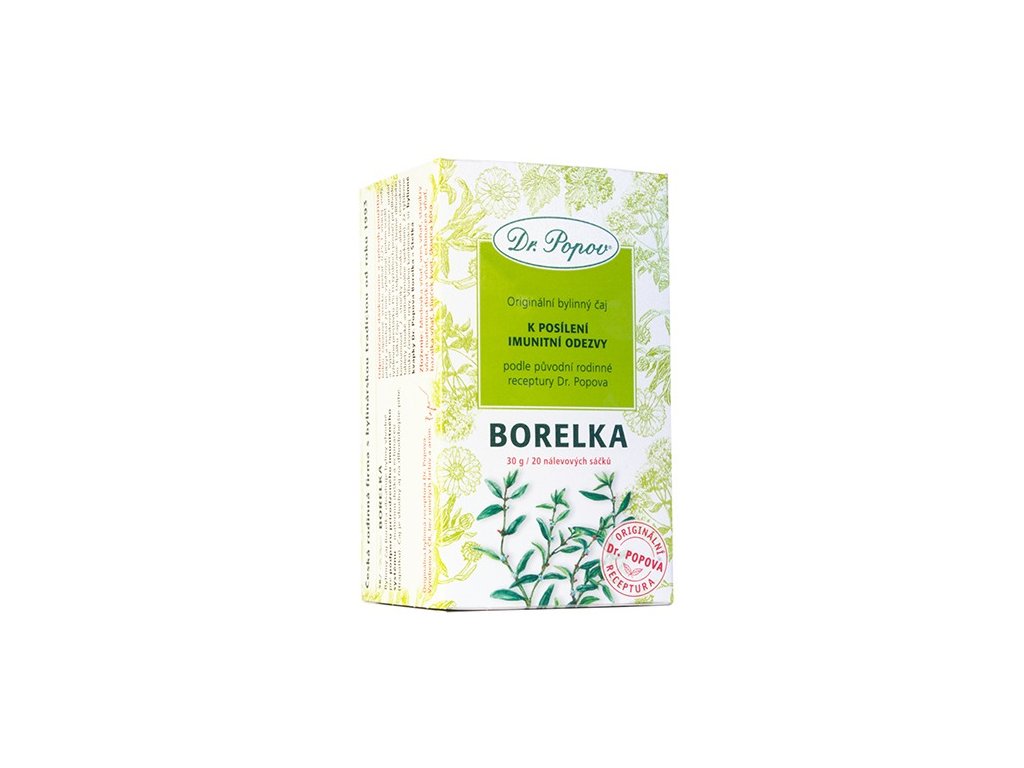 Bylinný čaj Dr. Popova Borelka obsahuje byliny vhodné pro podporu přirozeného imunitního systému (mateřídoušku a echinaceu (třapatku)), zmírnění únavy a navrácení vitality. Po náročné cestě za uzdravením si vaše tělo zaslouží jen to nejlepší. Náš čaj je pečlivě sestavenou směsí bylin, které vám pomohou navrátit sílu a harmonii.