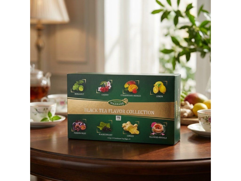 Pokud máš rád pestrost a nechceš zůstávat u jedné jediné chuti, Countess Nazzare Black Tea Flavor Collection je skvělá volba. Tato kolekce nabízí 8 různých příchutí černého čaje, takže si můžeš vybrat podle nálady, denní doby nebo chuti.