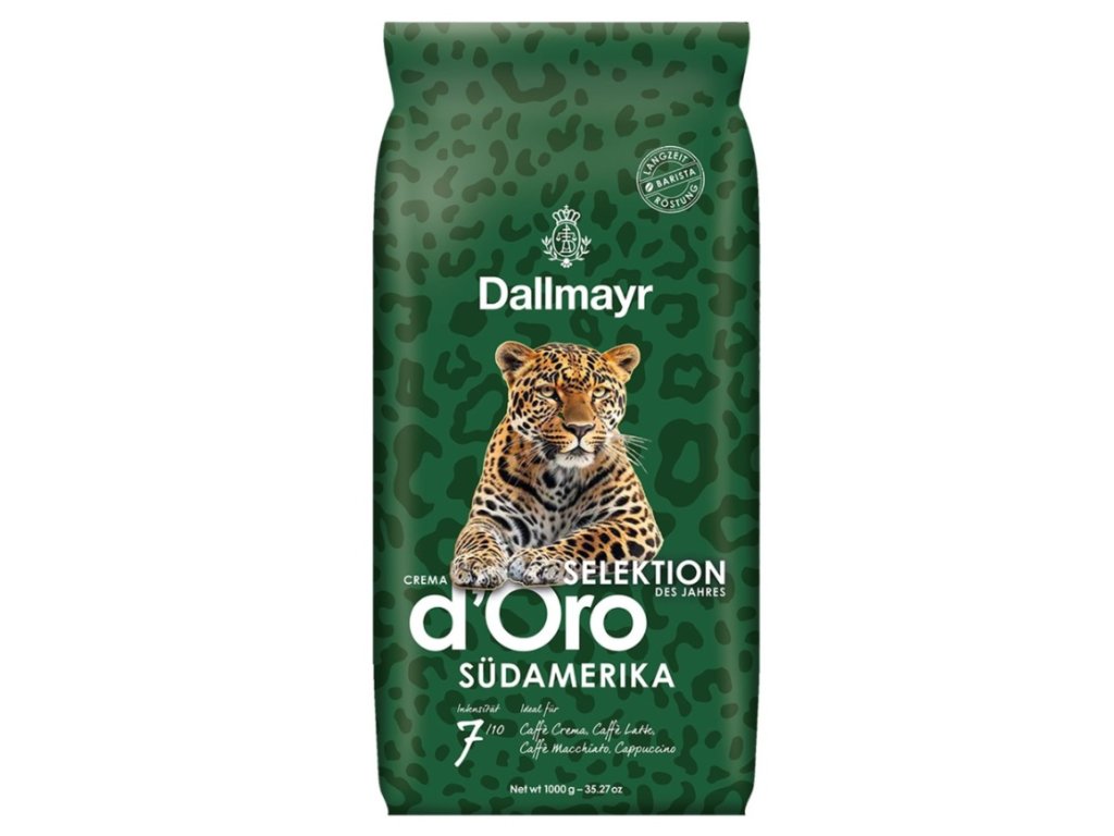 Dallmayr Selektion d’Oro Südamerika je výběrová zrnková káva složená ze 100% Arabica zrn pocházejících z pečlivě vybraných plantáží Jižní Ameriky. Nabízí harmonický a jemně vyvážený chuťový profil s lehkými oříškovými tóny, nádechem čokolády a příjemnou, mírnou kyselinkou.