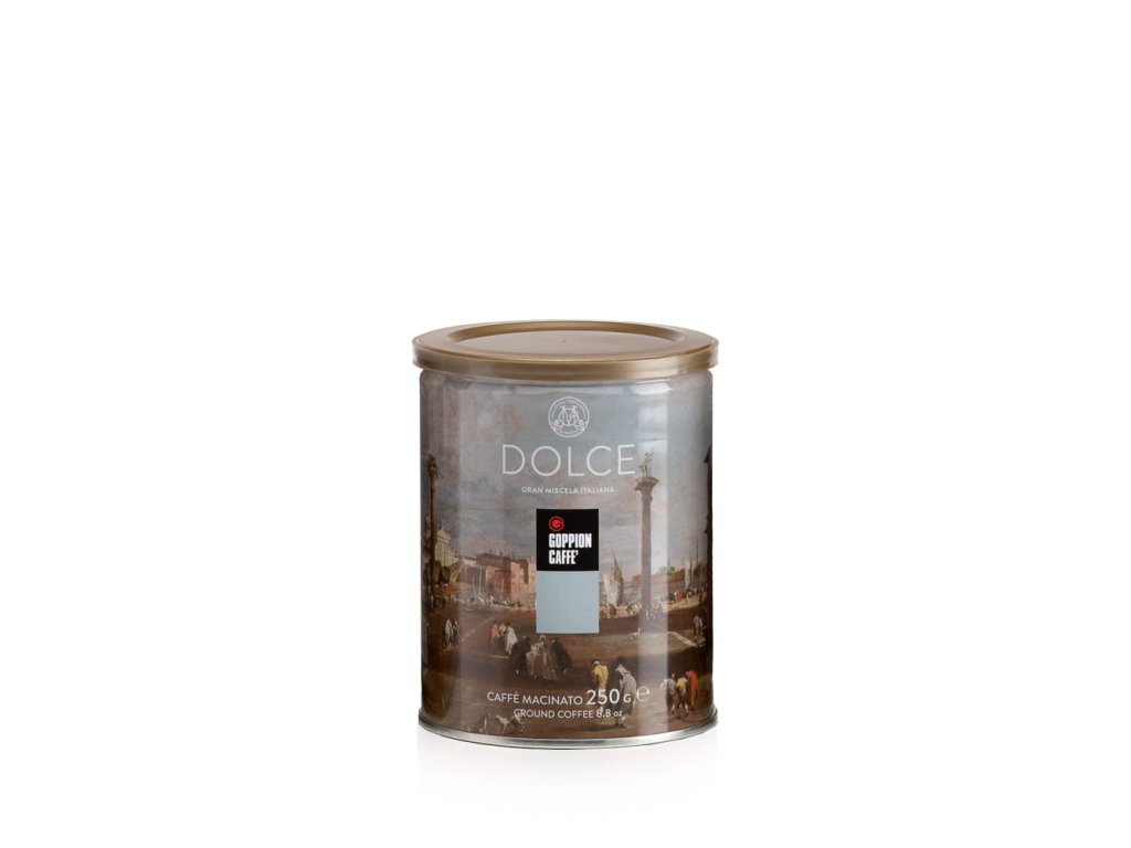 Goppion Dolce je první a nejznámější směs pražírny Goppion Caffè v Trevisu, založené již v roce 1948. Tato mletá káva vzniká z blendu přibližně 90 % kvalitních zrn Arabicy z Brazílie, Etiópie, Guatemaly a Hondurasu a asi 10 % Robusty z ostrova Flores, což dává výslednému šálku plné tělo, sametovou strukturu, příjemnou sladkost a výborné aroma s malou hořkostí.
