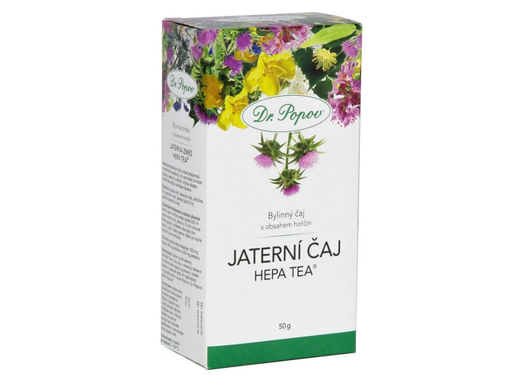 Jaterní čaj Hepa tea® Dr. Popova je vyvážená bylinná směs s obsahem hořčin. V čaji je použita např. pampeliška, která přispívá ke zdravé funkci žaludku a jater, stimuluje trávení a působí detoxikačně. Ostropestřec pomáhá pročisťovat játra a chrání jejich buňky a tkáně před oxidativním poškozením. Artyčok patří mezi další významné jaterní byliny.