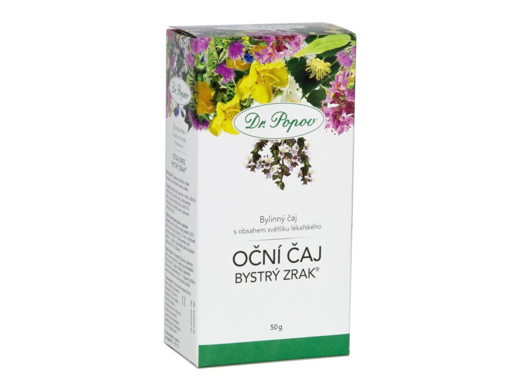Každý den vaše oči čelí digitální zátěži, prachu a stresu. Některé činnosti způsobují nadměrnou únavu očí-dlouhé sledování monitoru, telefonu nebo televize, řízení auta, práce u ventilátoru. I věk hraje důležitou roli. Dopřejte jim zasloužený odpočinek s Očním čajem Bystrý zrak Dr. Popova. Tato speciálně sestavená bylinná směs obsahuje vyváženou kombinaci tradičně užívaných bylin a hlavně vynikající světlík lékařský, který přispívá k optimálnímu a zdravému stavu zraku, je po staletí známý pro své blahodárné účinky na unavené a podrážděné oči. Doplňuje ho například měsíček, který přispívá k celkové ochraně zraku a zklidnění. Vychutnejte si šálek, který nejen chutná skvěle, ale také pomůže vašim očím zůstat v dobré kondici.