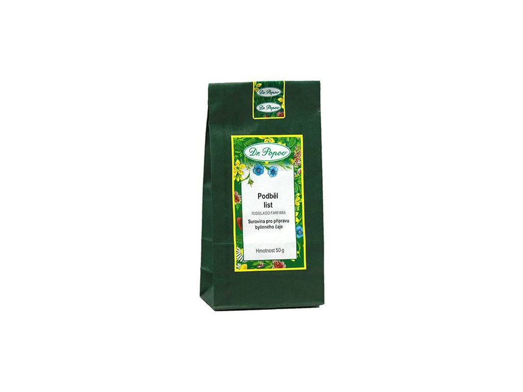 Podběl list, 50 g Dr. Popov – Sušené listy podbělu vhodné k přípravě bylinného čaje. Podporují normální funkci dýchacího systému.
