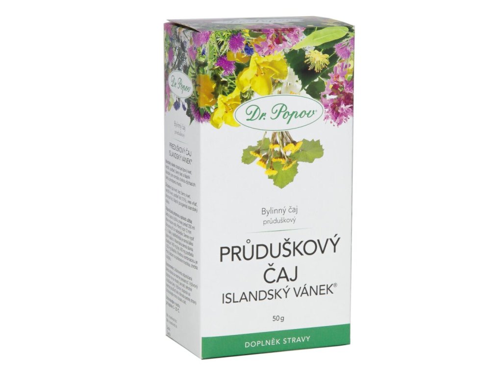 Průduškový čaj Islandský vánek®, sypaný, 50 g Dr. Popov. Pohlazení pro vaše průdušky. Udržuje zdravé dýchací cesty a usnadňuje dýchání (díky lipovému květu).