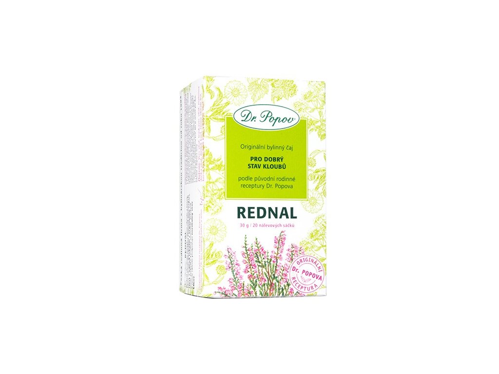 Bylinný čaj Dr. Popova Rednal obsahuje ibišek, černý rybíz a břízu, které udržují normální činnost močových cest a odvod tekutin z organizmu (odstranění přebytku kyseliny močové). Kyselina močová se může při vyšších koncentracích srážet a tvořit krystaly, které se ukládají nejčastěji v okolí kloubů a šlach (dnavá artritida) či v ledvinách. Způsobuje mnohdy bolestivé otoky v oblasti kloubů, v horším případě i jejich trvalé deformace. Tužebník a černý rybíz podporují zdravý stav kloubů.