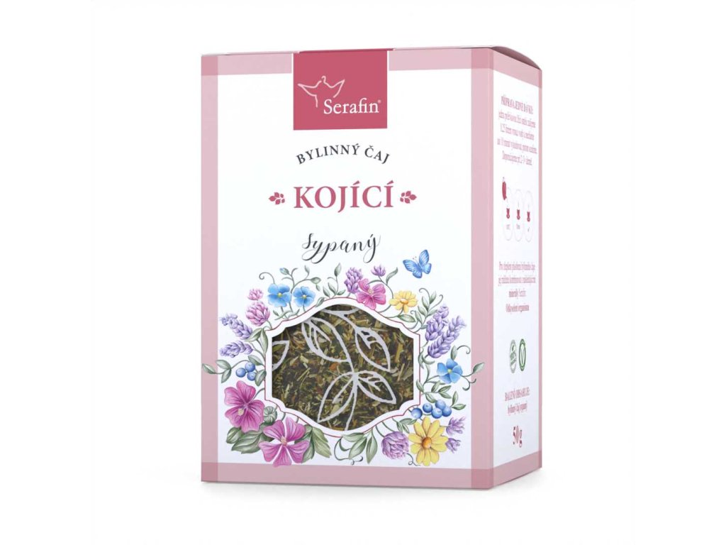 Serafin Kojící – sypaný čaj 50 g. Napomáhá tvorbě mateřského mléka, přispívá ke správnému fungování střev a trávení.